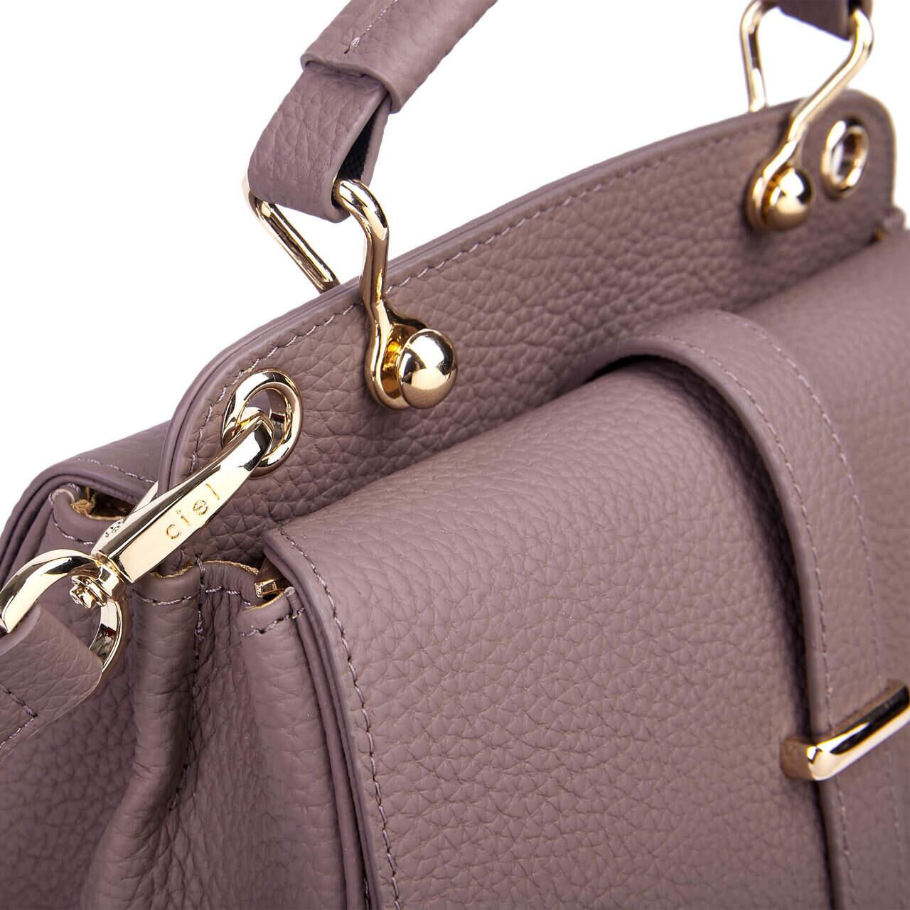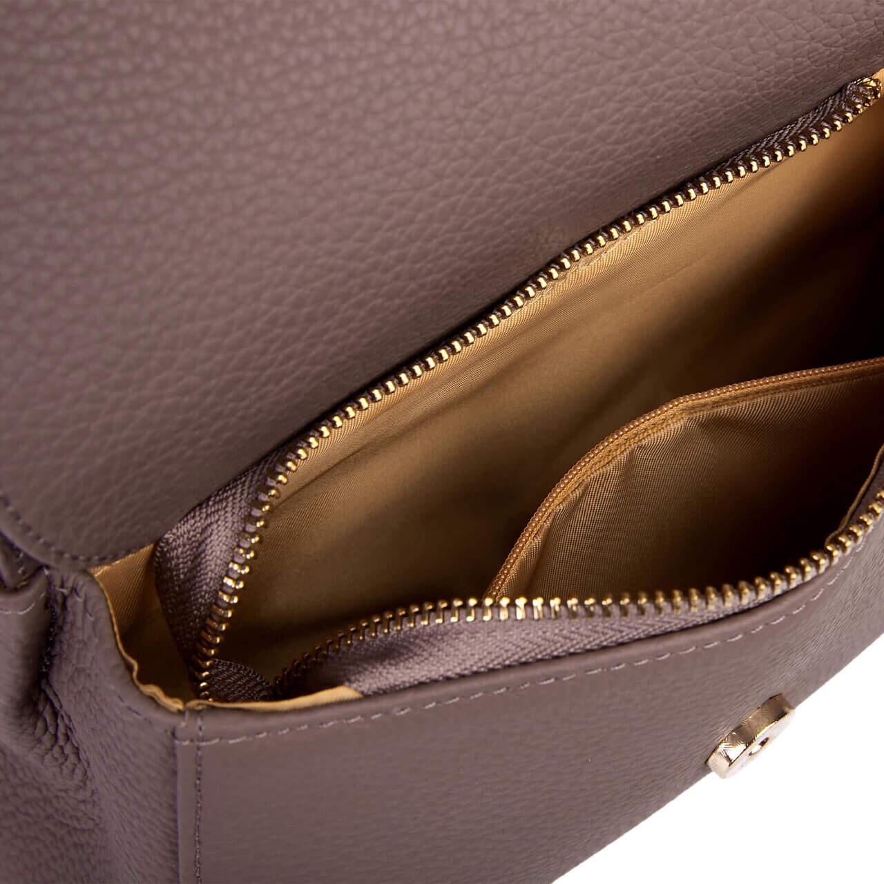 Designul compact al genții Cailis și bine definit, este pus în valoare de accentele aurii, iar închiderea centrală adaugă acea notă de rafinament clasic care o face atemporală.