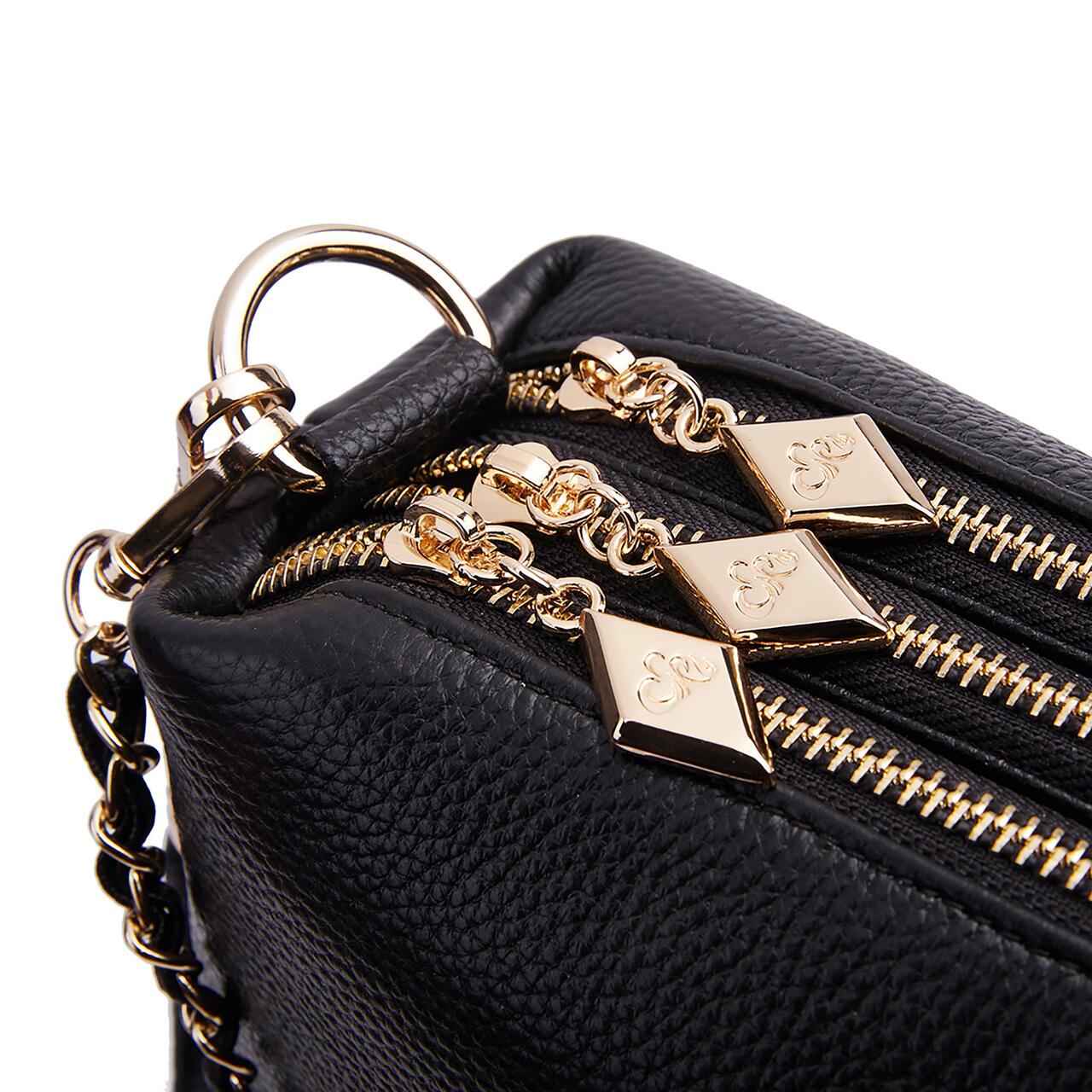 Geanta Carina știe să se adapteze: o porți de mână, cu lanțul stil bijuterie, atunci când vrei un accent sofisticat, sau pe umăr, când ritmul zilei o cere.