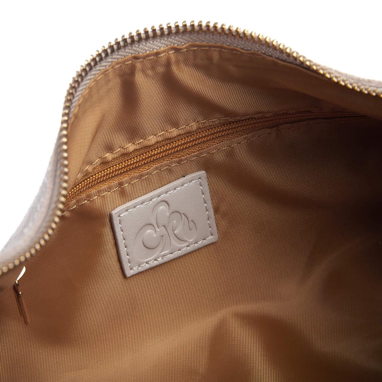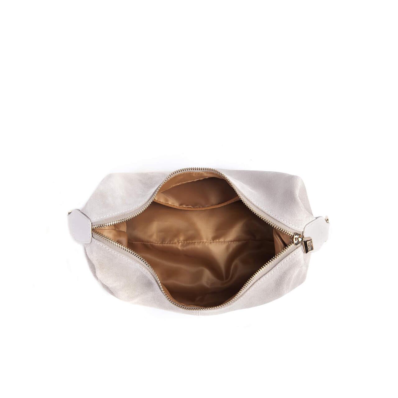 Pielea suede, accentele aurii și dimensiunea compactă o transformă în alegerea ideală pentru ținutele de zi sau de seară.